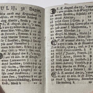 Frisian almanak in good condition, printed in Leeuwarden by Suringar. With contributions of the later famous astronomer Elte Martens Beima.