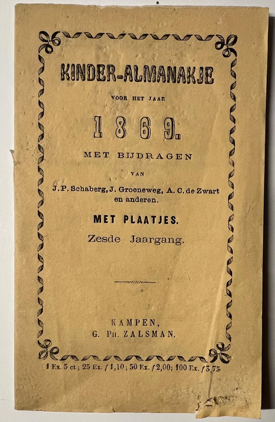 Almanac 1869 | Kinder-Almanakje voor het jaar 1869 met bijdragen van J.P. Schaberg, J. Groeneweg, A.C. de Zwart en anderen. Met plaatjes zesde jaargang, Kampel G.Ph. Zalsman, 24 pp.