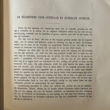 [Clocks and watches 1887] Geschiedenis der openbare tijdaanwijzing, Leiden E.J. Brill 1887, (2)+VIII+136 pp. 2 folding lithographed plates.