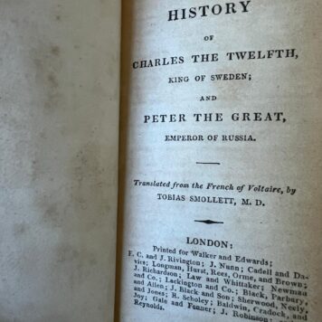 English literature 1817 | The History of Charles the Twelfth, king of Sweden and Peter the Great, emperor of Russia, translated from the French of Voltaire by Tobias Smollett, London Walker and Edwards 1817, in -12 Duodecimo edition, xii+632 pp.