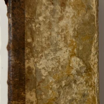 Half leather binding in bad condition, 13,5 x 8 cm. In-12, duodecimo edition. Interior in good condition, sometimes a brown spot on a page but most of the time clean. First pages a bit browned. With attractive frontispice with cupid touching up the portrait of Galen: Galenus Authorum Medicine Compilator + l’Amour de la santé Francoise.