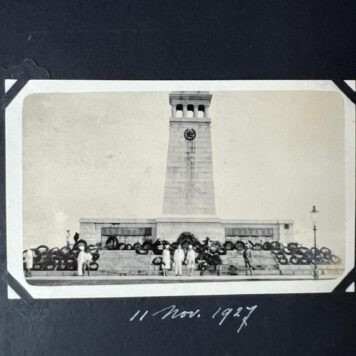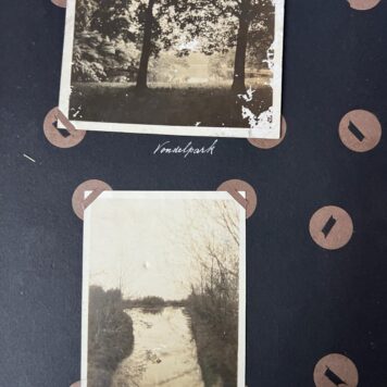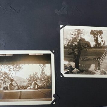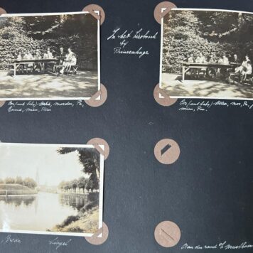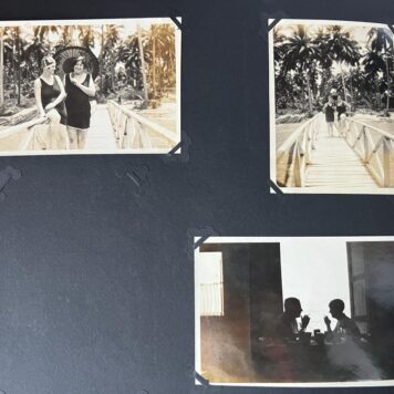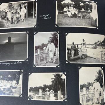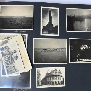 Photoalbum with black cover and rope binding, with the text Artistic Photography. Starting with photo’s of Amsterdam: voorjaar 1928: Vondelpark, Zuidelijke wandelweg. Breda: Liesbosch bij Princenhage, etc. De Haagsche dierentuin in mei met vijver, rosarium, pauw, etc. Alkmaar kaasmarkt, Broek in Waterland, fietstocht Veluwe, Garderen, Harderwijk, waterval bij Loenen, Loose photo’s of Genua. Photo’s of San Marino and hotel Miramar, on the Righi. Photo of Gibraltar and Stromboli and a threemaster with full sails at sea, 15 photo’s of Colombo: Mount Lavinia and some interior photo’s of the house. Ca 1928. 4 photo’s of the Mosque (moskee) in Johore Bahra Maleisie (Malaysia) and 11 more photo’s Malaysia. Not all sheets filled. One large group photo (22 x 28 cm) in the end of mostly men in suits. Other photo’s mostly 10 x 8 cm.