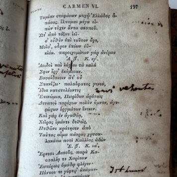 Poetry Greek language 1829 | Pindari Carmina ad optimorum librorum fidem accurate edita, editio stereotypa, Lipsiae (=Leipzig) Caroli Tauchnitz 1829, 264 pp. Book in Greek language richly annotated in manuscript writing.