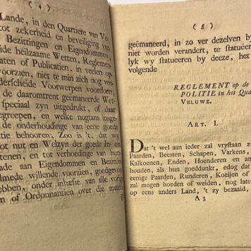 Legal pamphlet 1805 | Veluwe Publicatie van het Departementaal Bestuur van Gelderland, houdende reglement op de veld-politie in het quartier van Veluwe, gearresteert den 5-4-1805. Arnhem, J.H. Moelman, [1805].