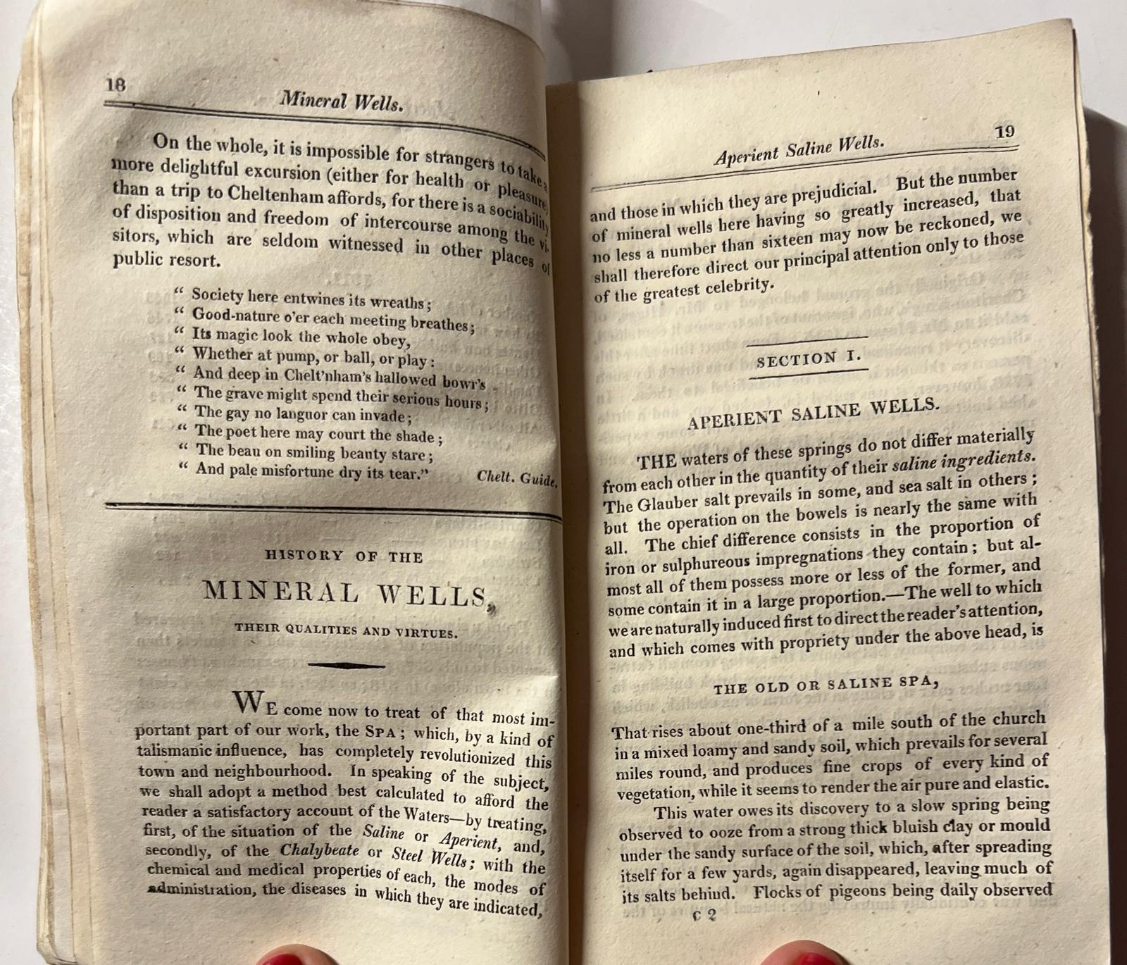 Travel guide Cheltenham 1815 | The new and improved Cheltenhem guide, 2nd. edition, printed by Wood and Cunningham, Bath [early 19th. century, 1815?], 142+(2) pp.